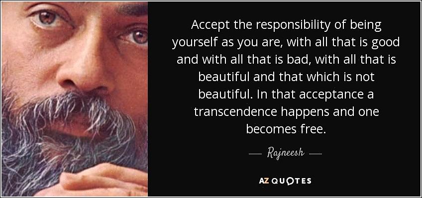 - אתה חופשי לחיות את סוג החיים שאתה רוצה. אבל כדי להשיג זאת, עליך למקד את כל המשאבים, האנרגיה והתקווה בעצמך. אף אחד לא חייב לעזור לך לעשות כלום. האחריות היא שלך ושלך בלבד.