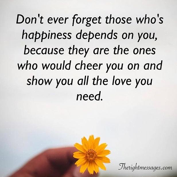 מה המשמעות של אושר עבורך? זו השאלה הראשונה שעליכם לענות עליה. אבל אל תעשה את הטעות לחשוב על מישהו אחר. לא, עכשיו זה הזמן בשבילך לחשוב על עצמך; אתה מקדימה ומרכזית. היה אחראי ומצא את האושר שלך.