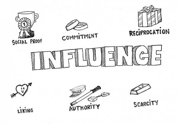 רוברט סילדיני שילב טכניקות שכנוע בשישה עקרונות יסוד: מחויבות, הדדיות, הוכחה חברתית, סמכות, חיבה ומחסור.