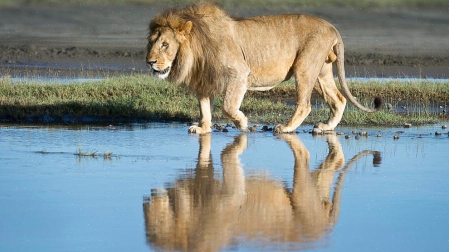 האריה הוריד את ראשו, מתח את צווארו והלך ללגום לגימה גדולה כשלפתע, הוא נבהל מההשתקפות שלו, וחשב שיש עוד אריה ממש מולו.