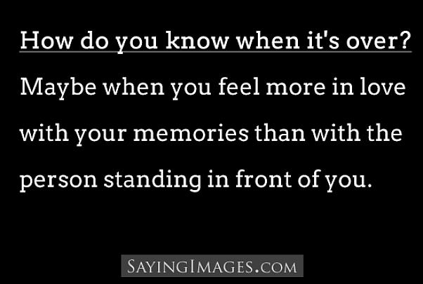 זו הסיבה שאנחנו צריכים לסיים את הקשר כשאנחנו יודעים שלא נשאר כלום, לכבוד משהו שפעם היה יפה. הארכת הסבל שלא לצורך רק תזרוק עוד לכלוך על האש הגוססת ותטשטש את זיכרונות האושר שחלקו פעם שתי נשמות אוהבות.