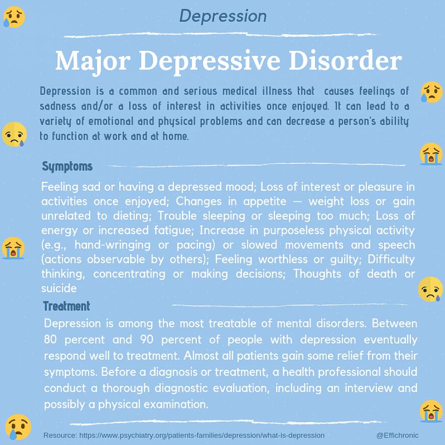 כדי לאבחן אדם עם דיכאון מג'ורי, לא היו לו אפיזודות מאניות או היפומאניות, סכיזופרניה או כל הפרעה פסיכוטית אחרת.