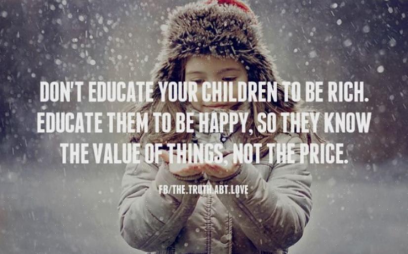 למדו ילדים להיות מאושרים, לא להיות עשירים. לגרום להם להבין שהערך של אדם לא נמצא במה שיש לו או אין לו מבחוץ, אלא במה שיש לו מבפנים. למד אותם לפתח אסטרטגיות וכישורים טובים שיעזרו להם להבין מי הם בעולם.