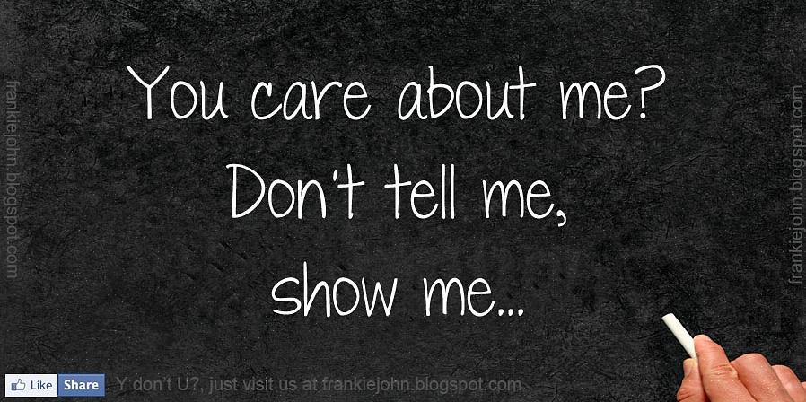 אם אכפת לך ממני, תראה את זה בעיניך. הראה לי הדדיות, ושכנע אותי שהאהבה שלנו היא שיתופית ואמיתית. מכיוון שמתעלמים יום אחד ומקבלים הכרה למחרת על ידי האנשים שאנחנו הכי אוהבים יכול להוביל לכאב וחוסר ודאות.