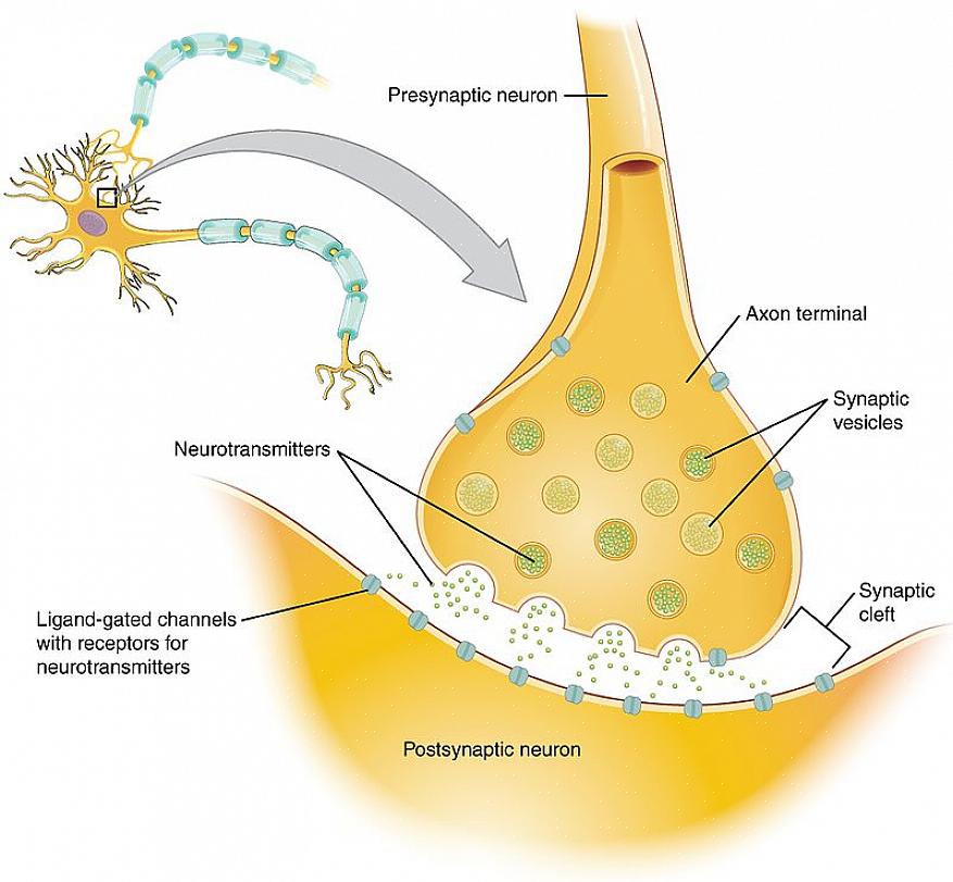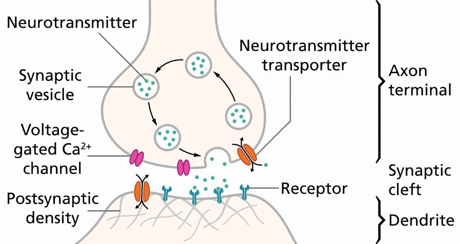 במהלך סינפסה כימית , הנוירון שמעביר מידע (פרה-סינפטי) משחרר חומר. במקרה זה, זה נוירוטרנסמיטר, דרך מסוף האקסון הפרה-סינפטי, המשחרר אותו למרווח הסינפטי. לאחר מכן, הנוירון הקולט (פוסט-סינפטי), עם קולטנים ספציפיים לכל נוירוטרנסמיטר, אחראי על קבלת המידע דרך הדנדריטים שלו.