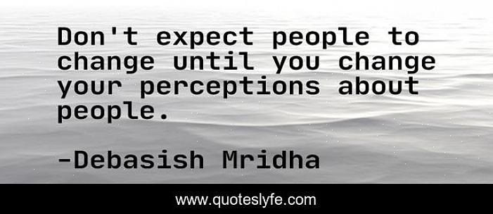 לצפות שאנשים ישתנו עבורך זה חסר תועלת. זה קורה לעתים קרובות במערכות יחסים שבהן אדם אחד רוצה שהאדם השני ישתנה לטובה, יתנהג כמו שצריך ויאהב אותו כמו שהוא רוצה. עם זאת, ציפיות אלה מתקיימות רק לעתים רחוקות.