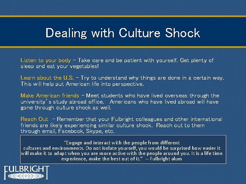 גם הפסיכולוגיה מעוניינת בסוג זה של הסתגלות לסביבות אחרות. במהלך העשורים האחרונים, מספר חקירות התמקדו בעיקר בלחץ של הלא נודע, ביכולתו של כל אדם להתמודד עם תרבות אחרת.