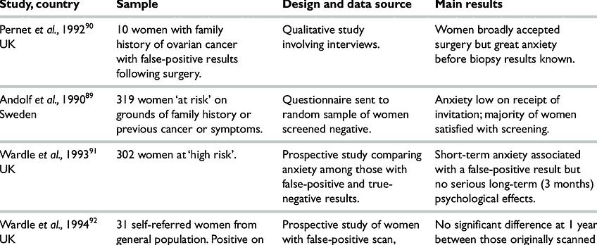 Olivares (2004) חוקר את ההיבטים הפסיכולוגיים של סרטן גינקולוגי. אחת מהן, חרדה, מתגלה כמנבאת החלמה עבור מטופלים לאחר ניתוח.