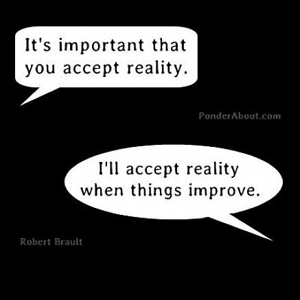 כאשר אתה מתמודד עם משהו שאתה לא אוהב, אתה יכול להגיב בדרכים שונות. אתה יכול להתלונן על המזל הרע שלך, לעבוד כדי לשנות אותו, או לקבל אותו ולעבוד איתו כך שהוא לא תמיד בראש שלך. אולי תדבר על זה או תחליט להתעלם מזה. ישנה אפשרות לקבל את זה במחשבותיך או לבטל נפשית את כל מי שמדבר על זה. עם זאת, בסופו של יום, אתה צריך לקבל את המציאות. לכן, לעתים קרובות, אין דרך לעקוף את זה.