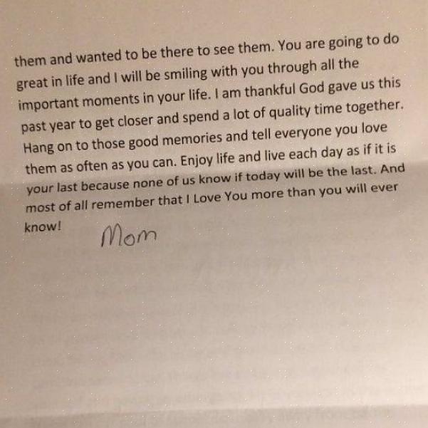 התחל בברכת שלום, ספר להם מה שלומך מאז שהם עזבו וסיים בהבעת הכרת תודה על כל הזמן שהם היו שם. הם כבר לא איתך וזה עצוב, אבל זה היה גם נהדר שהתמזל מזלי פעם אחת להיות איתם בקשר. נהנית, ניצלת את זה וכמו בכל דבר בחיים, זה יצא לדרכו והגיע לסיומו.