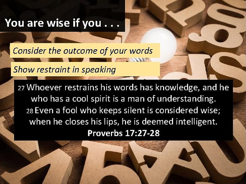 מילים פוגעות, פסקי דין, דעות מופרכות, ביקורת זדונית וכו'. כל אחת מהן מילים מטופשות שצריכות אוזניים חכמות שלא יתנו להן קרדיט או תשומת לב.