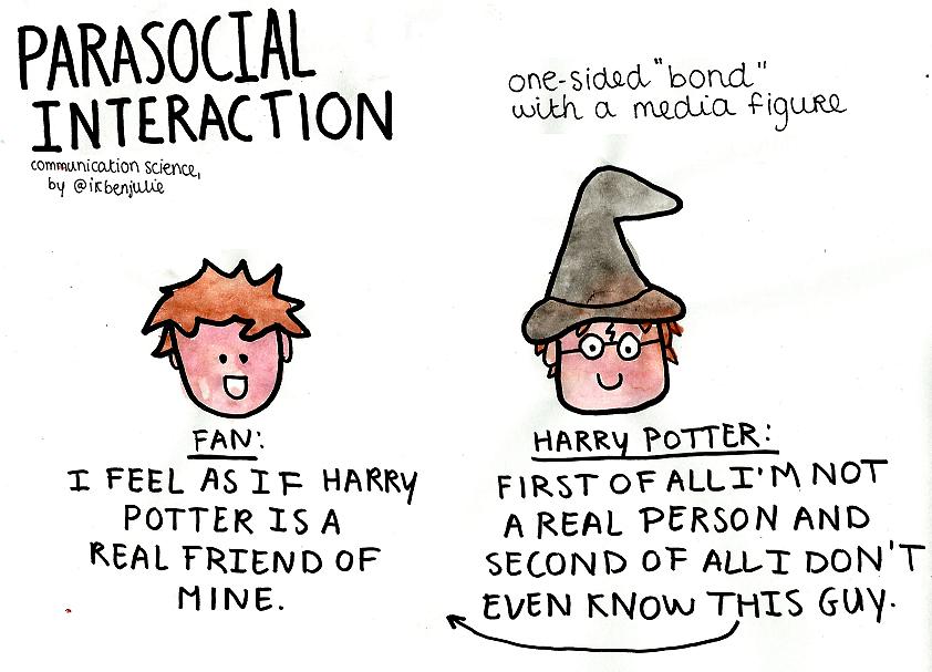 יתר על כן, מחברים אלה הוסיפו כי סוג זה של מערכת יחסים הוא חד צדדי (לא הדדי בשום צורה). לדבריהם, וכפי שציטט קארו (2015), הוא מתייחס ל"אשליה של הקהל של אינטראקציה הדדית עם אנשי תקשורת".